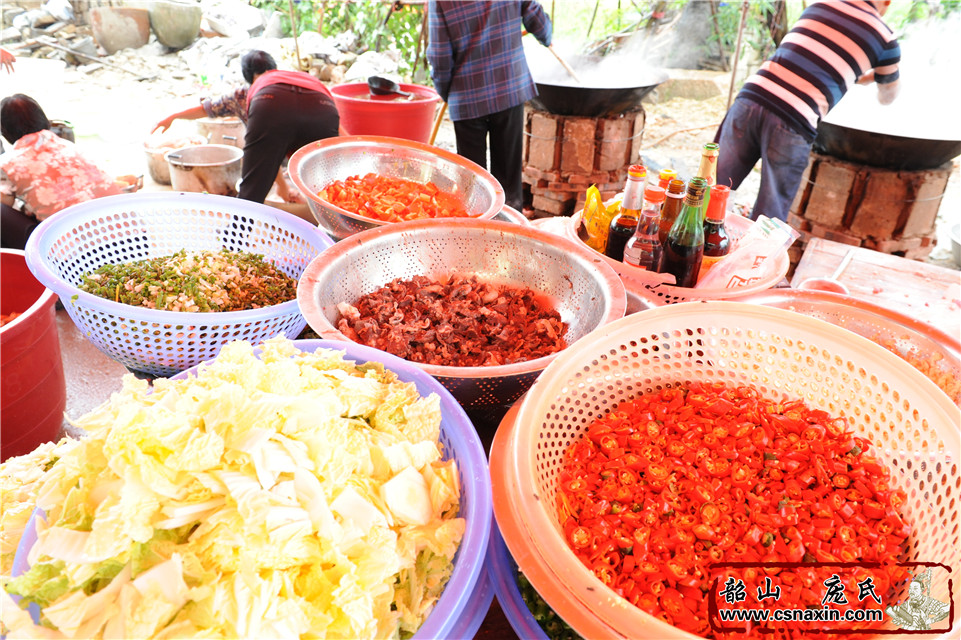工作人员准备为中午聚餐准备的饭菜
