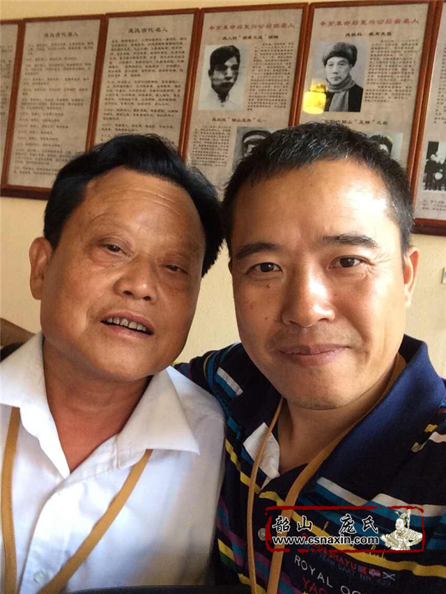 这是庞惊宇与当地临近村石山村村主任庞世红,庞世红40多岁,本次活动担任安全保卫组组长。在族内按辈分他还得叫庞惊宇为叔公呢。在韶山这个庞氏大家庭里,上下有八代同时生活在同一个时代,不得不说是个奇迹。