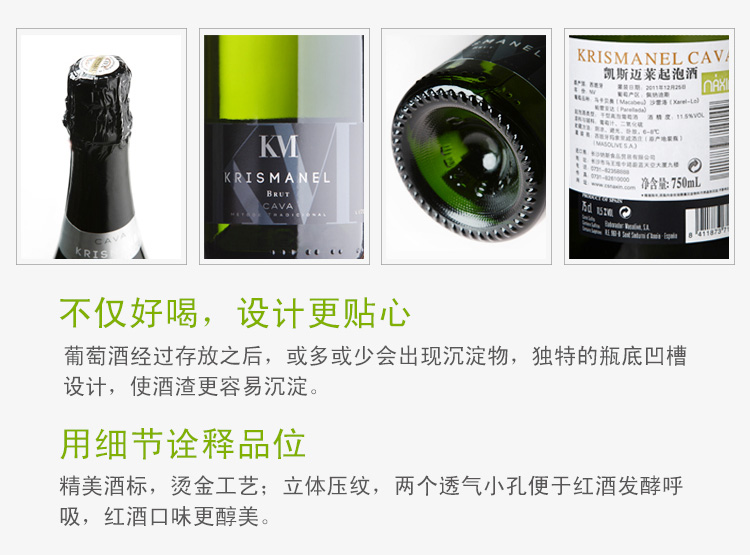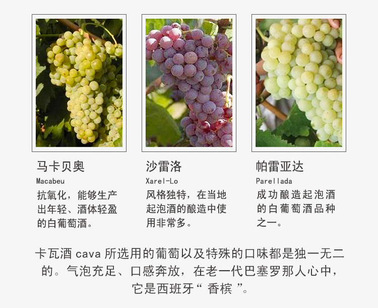 西班牙凯斯迈莱起泡酒 欢聚庆祝佳品 ¥ 720.00 气泡充足、口感奔放,在老一代巴塞罗那人心中,它是西班牙“香槟”。 此款选用马卡贝奥、沙雷洛和帕雷亚达混合酿制, 浅色愉悦的柠檬黄,较高的酸度, 明亮,带有中等大小的泡沫, 均匀垂直释放,形成气泡串和泡沫圈。 鼻感高雅精致,浓度温和、均衡, 总体香气芬芳馥郁而又欢愉高雅, 还具有清爽的水果香, 如菠萝、水梨、桃子,还有丝丝矿物香气。 适合搭配餐前酒、清淡菜式、生蚝、软奶酪等。 罐装日期: 2011年12月25日 产地: 西班牙 产区: 佩纳迪斯 最佳饮用温度: 6℃--8℃ 原料及辅料: 葡萄汁、二氧化硫 葡萄品种: 马卡贝奥(Macabeu)沙雷洛(Xarel-Lo)帕雷亚达(Parellada) 等级: 西班牙法定产区级(D.O. PENEDES) 贮藏条件: 阴凉、避光、卧放 灌装商: 玛索里威酒庄 净含量: 750ml 产品详情 产品属性